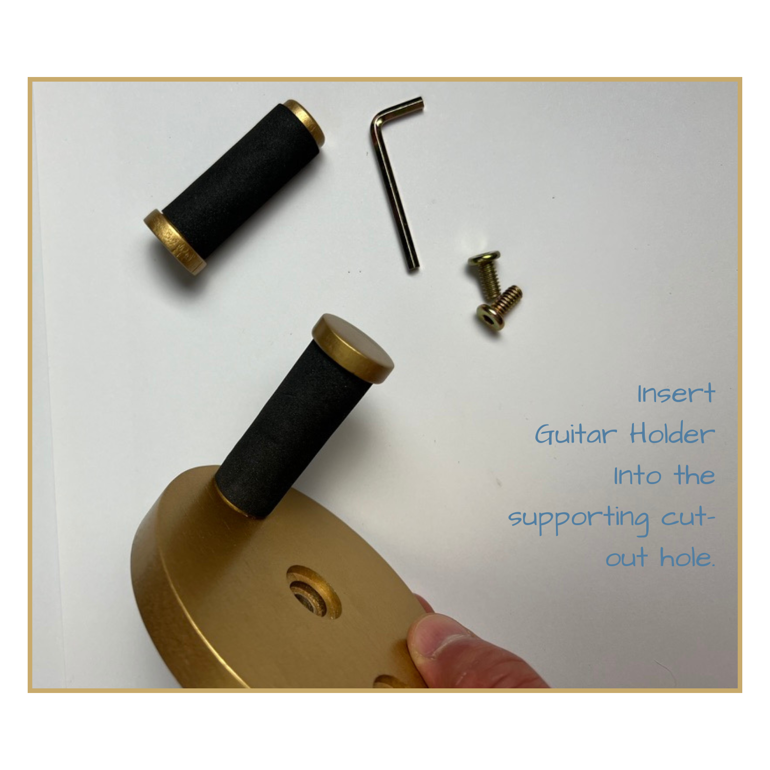 Insert two of the supplied bolts into each of the guitar support pieces from the back, and securely tighten using the allen key provided. Do not overtighten.