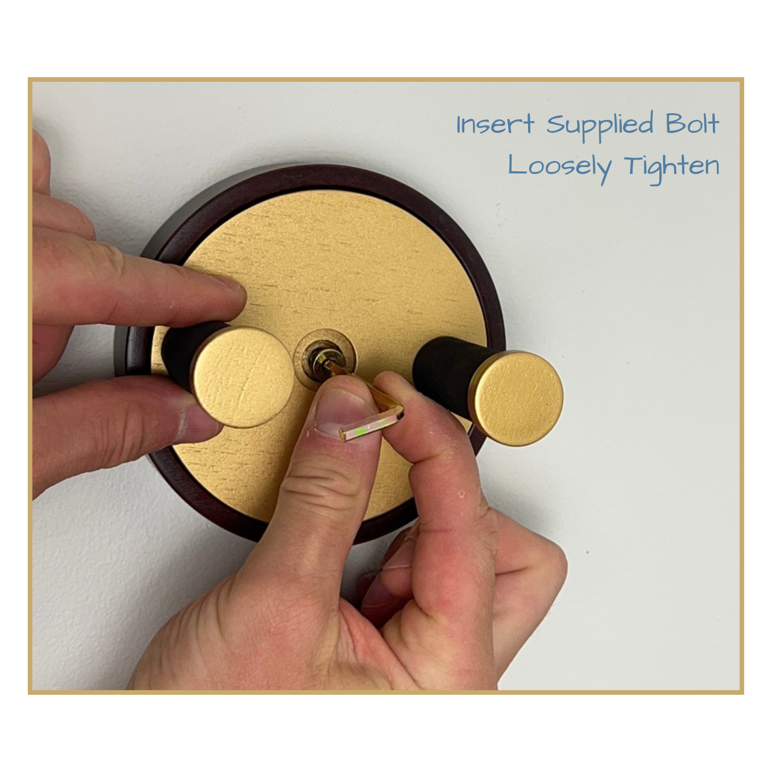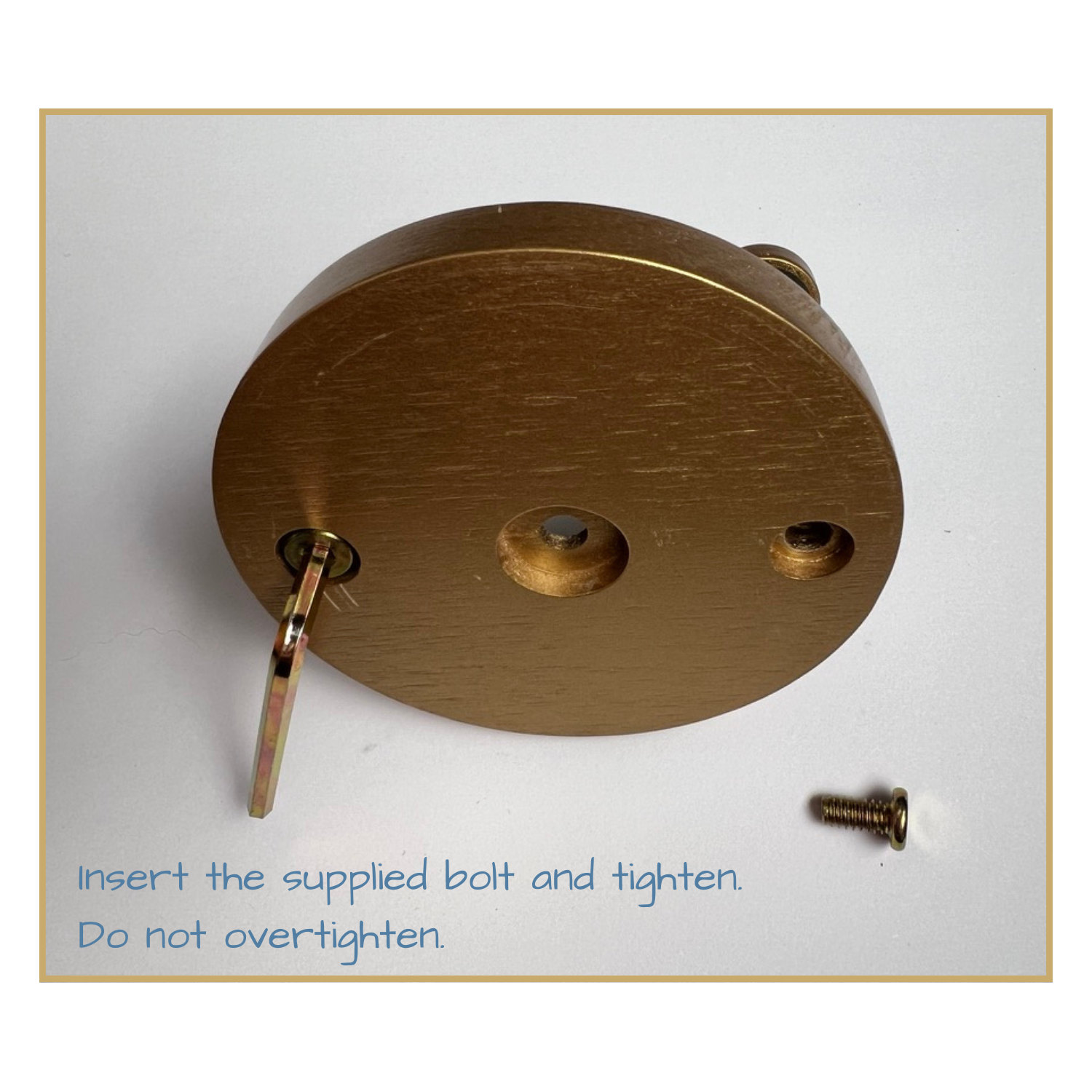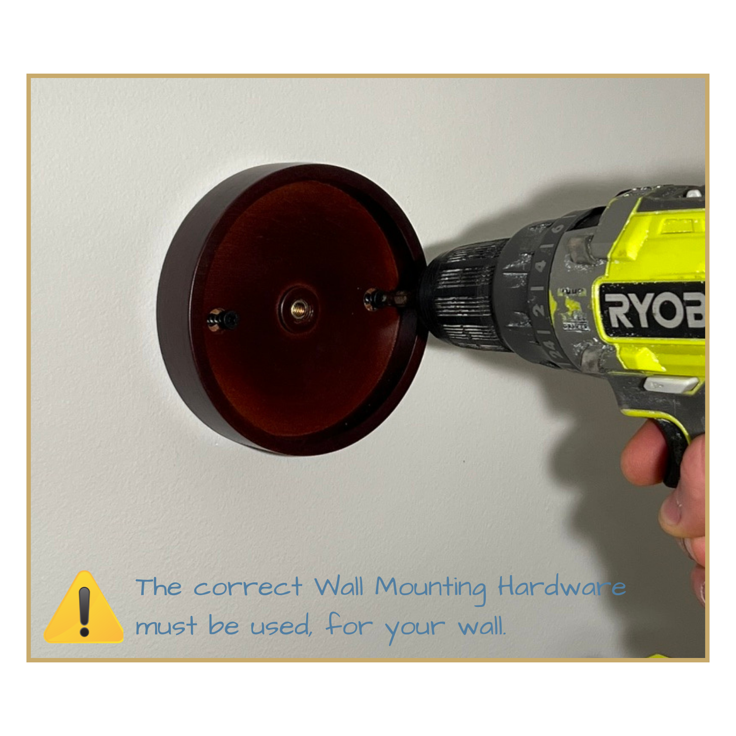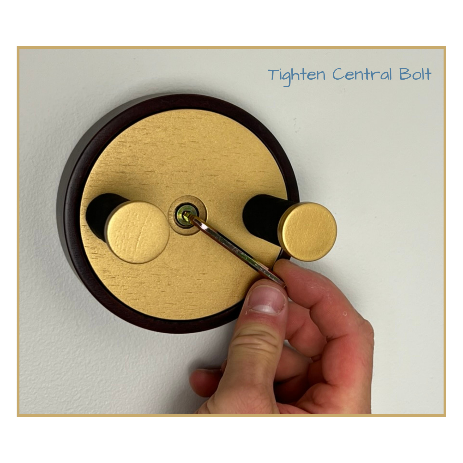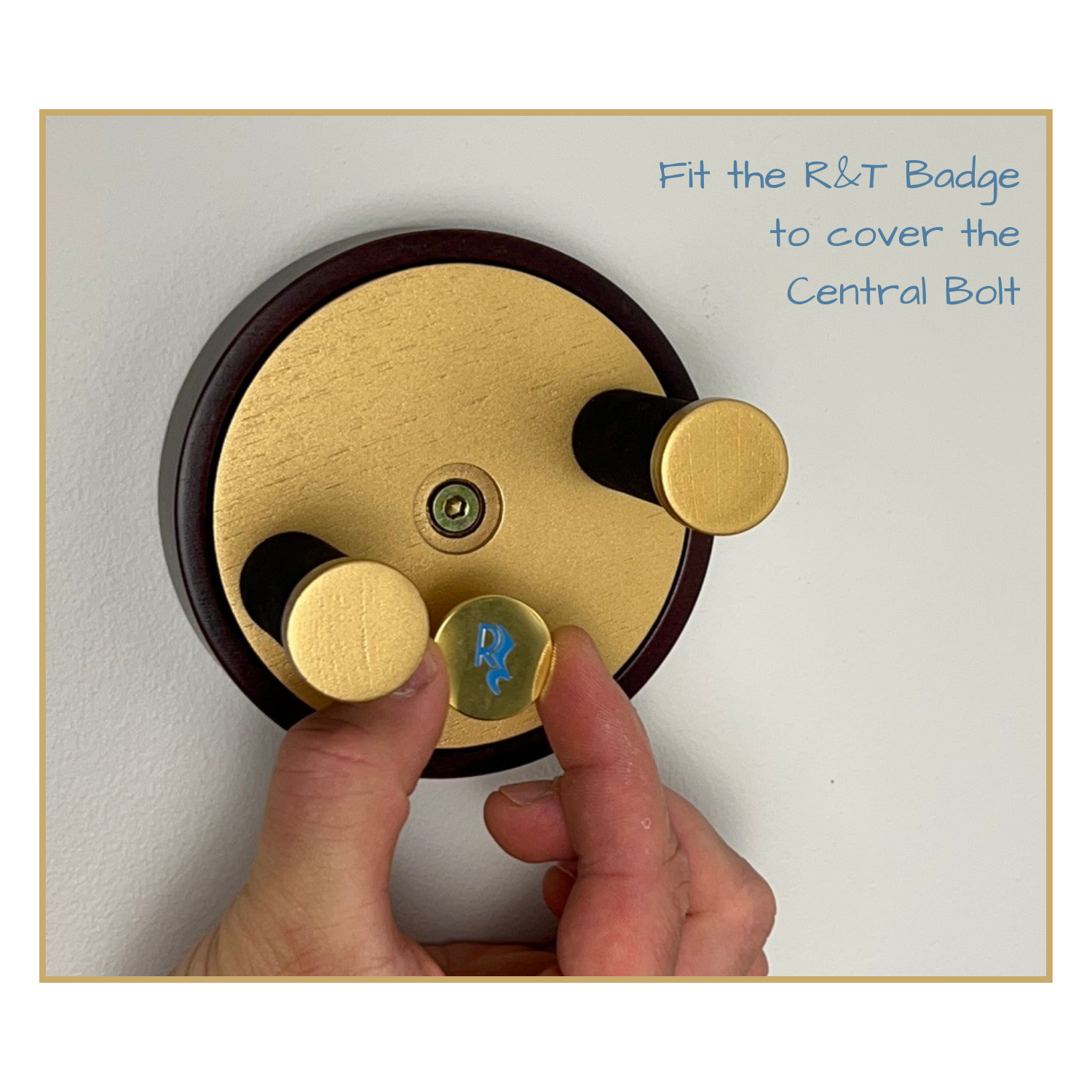 To hide the central bolt, insert our Rhythm & TImbre logo into the centre of the wall hanger.