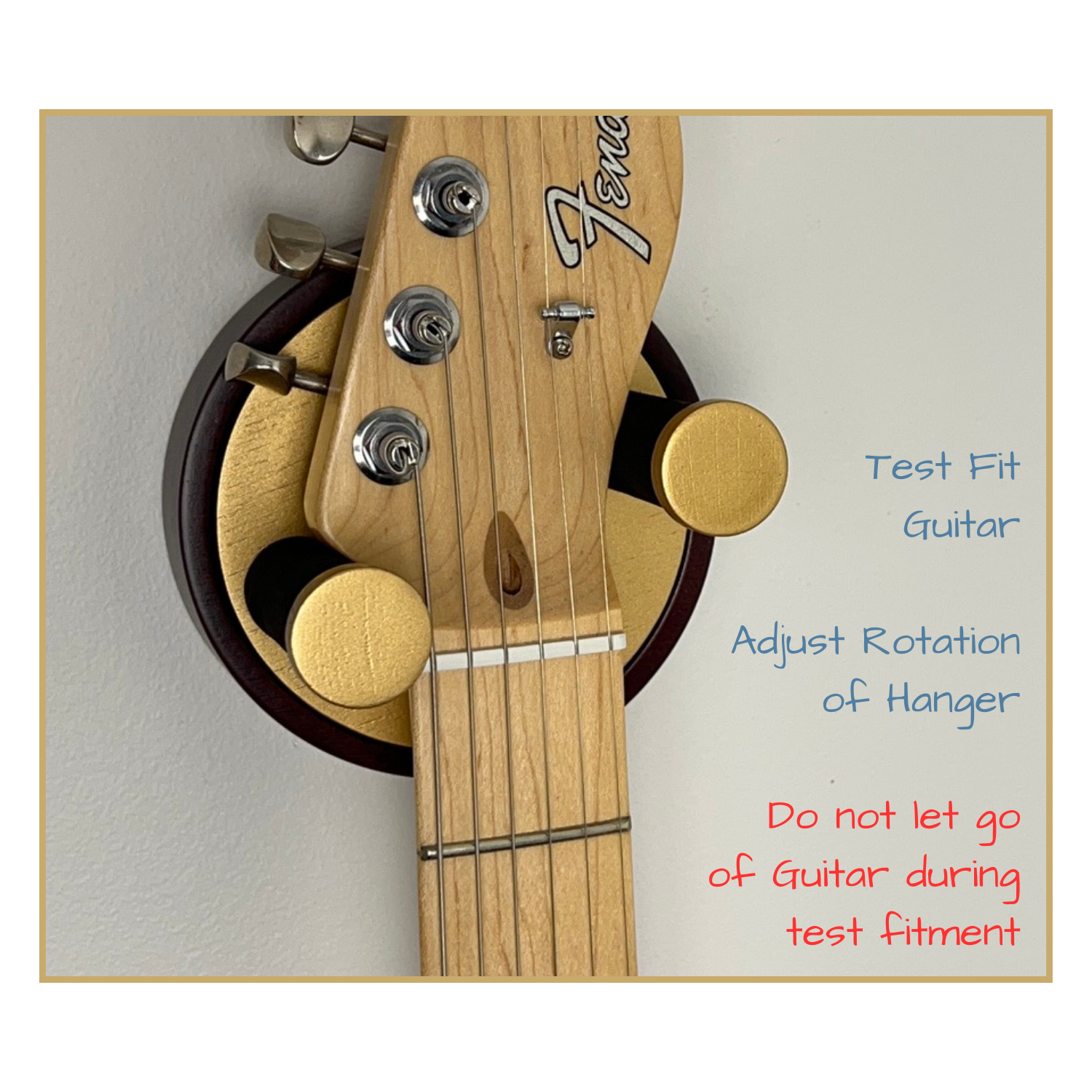 The hanger is designed to rotate to suit different head stocks. Holding the guitar, rotate the inner piece to a desired rotation.