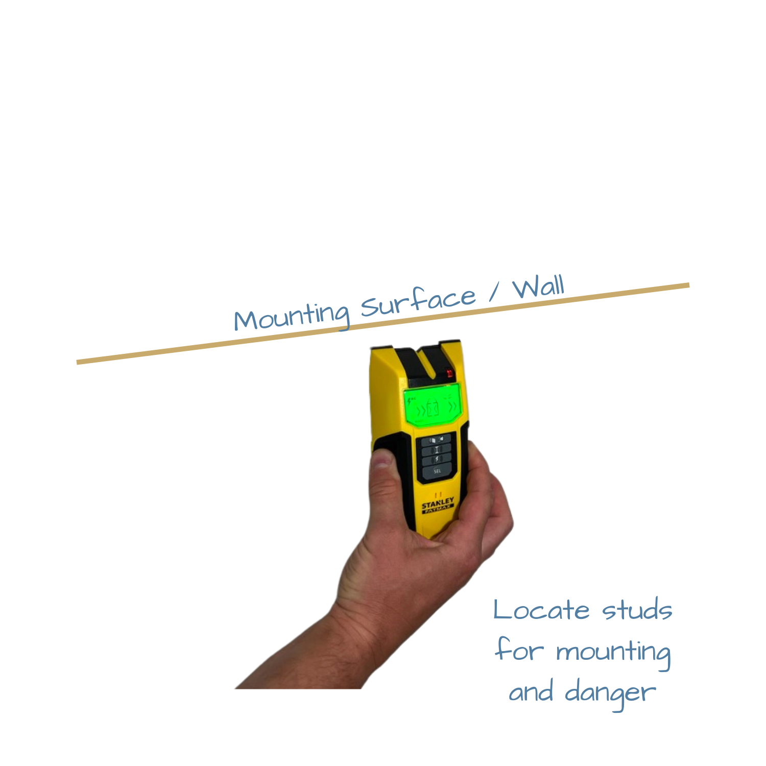 ⚡️ Depending on your mounting surface, we highly recommend you use a stud finder to locate structural studs, plumbing or electrical wiring.